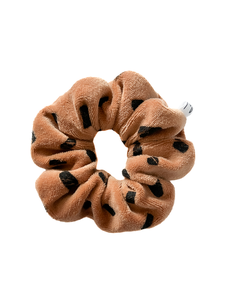 Brązowa gumka do włosów scrunchie z drobnym wzorem plamek to przytulny akcent dla fanek ciepłych, neutralnych tonów. Aksamitna frotka z weluru bawełnianego świetnie komponuje się z jesiennymi stylizacjami i kolorami ziemi. Miękki materiał nie ciągnie włosów i pozwala nosić ją komfortowo przez cały dzień. Pasuje zarówno do jasnych, jak i ciemnych włosów. Doskonała do pracy, szkoły czy spacerów po mieście.