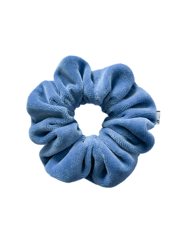 Aksamitna gumka do włosów scrunchie z weluru w klasycznym niebieskim kolorze to świeży i pogodny dodatek na co dzień. Świetnie podkreśla chłodne tonacje włosów – blond, siwe i popielate brązy. Aksamitny materiał nadaje fryzurze objętości i miękkości, nie uszkadzając przy tym struktury włosa. Doskonała do casualowych stylizacji.