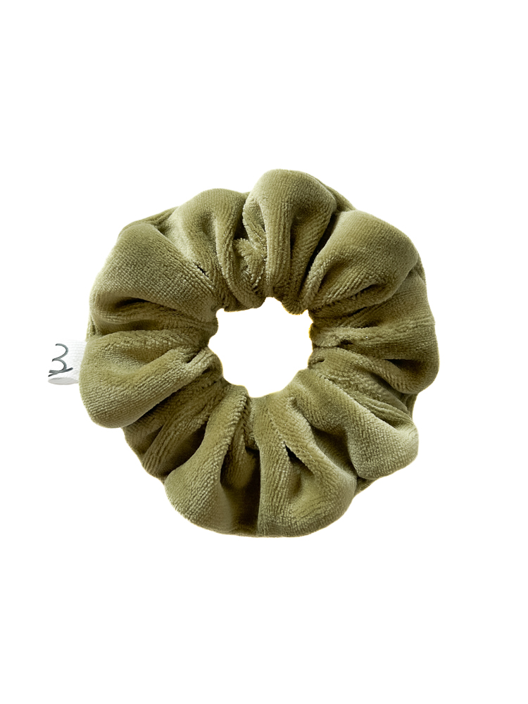 Aksamitna gumka do włosów scrunchie w kolorze oliwkowej zieleni inspirowana naturą i subtelnym stylem vintage. Świetnie uzupełni looki w odcieniach beżu, brązu, kremu czy bieli. Aksamitna struktura weluru dodaje elegancji, a materiałowa frotka zapewnia komfort i dobrze trzyma fryzurę bez ciągnięcia. Doskonała do codziennych stylizacji do pracy, szkoły czy na spacer.