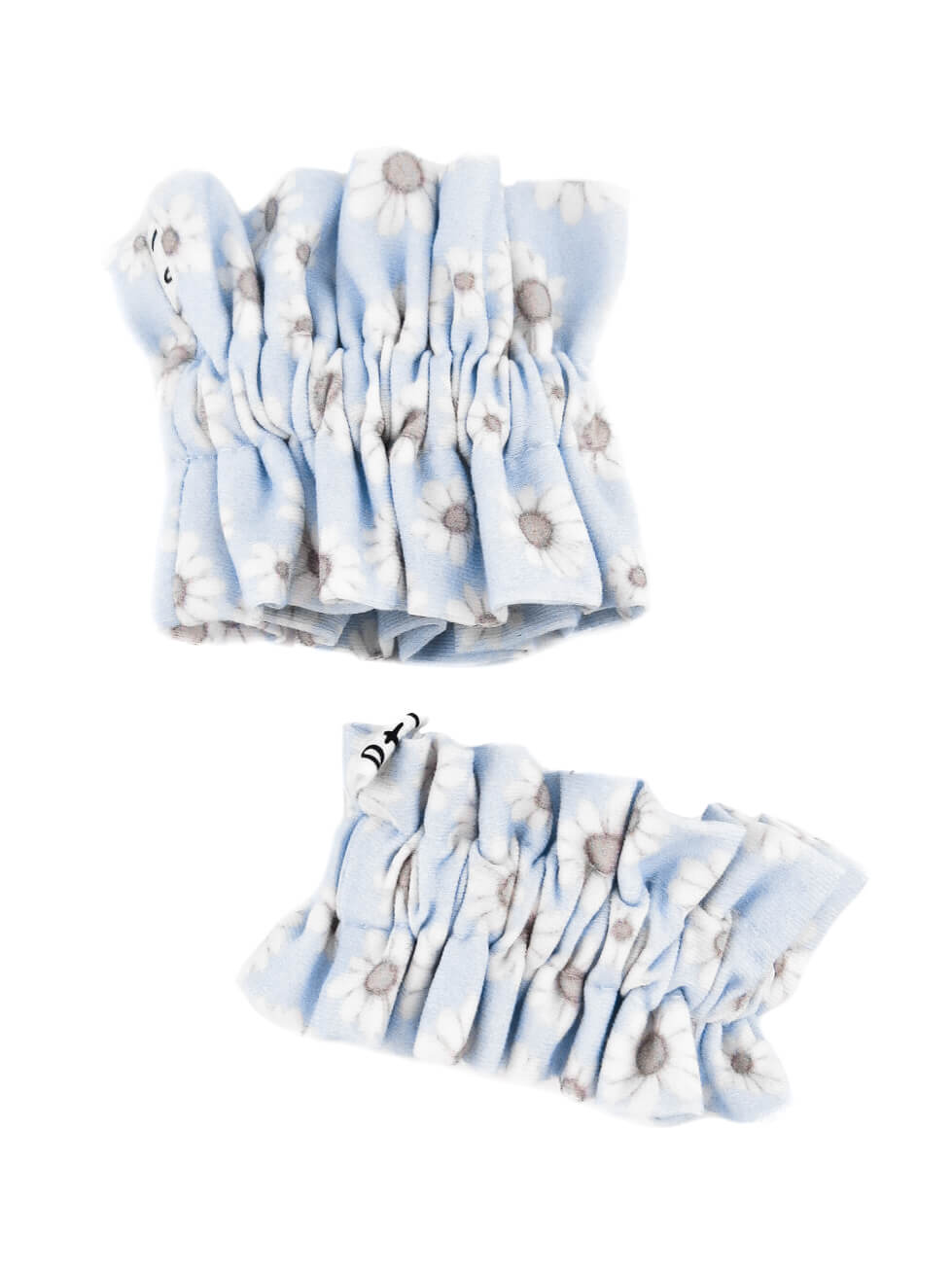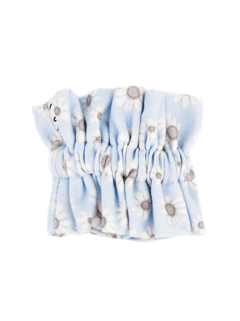 Niebieska ruffle scrunchie to subtelna marszczona gumka do włosów z falbanką, uszyta z bawełnianego materiału. Jest miękka, delikatna dla włosów i pięknie podkreśla fryzurę.