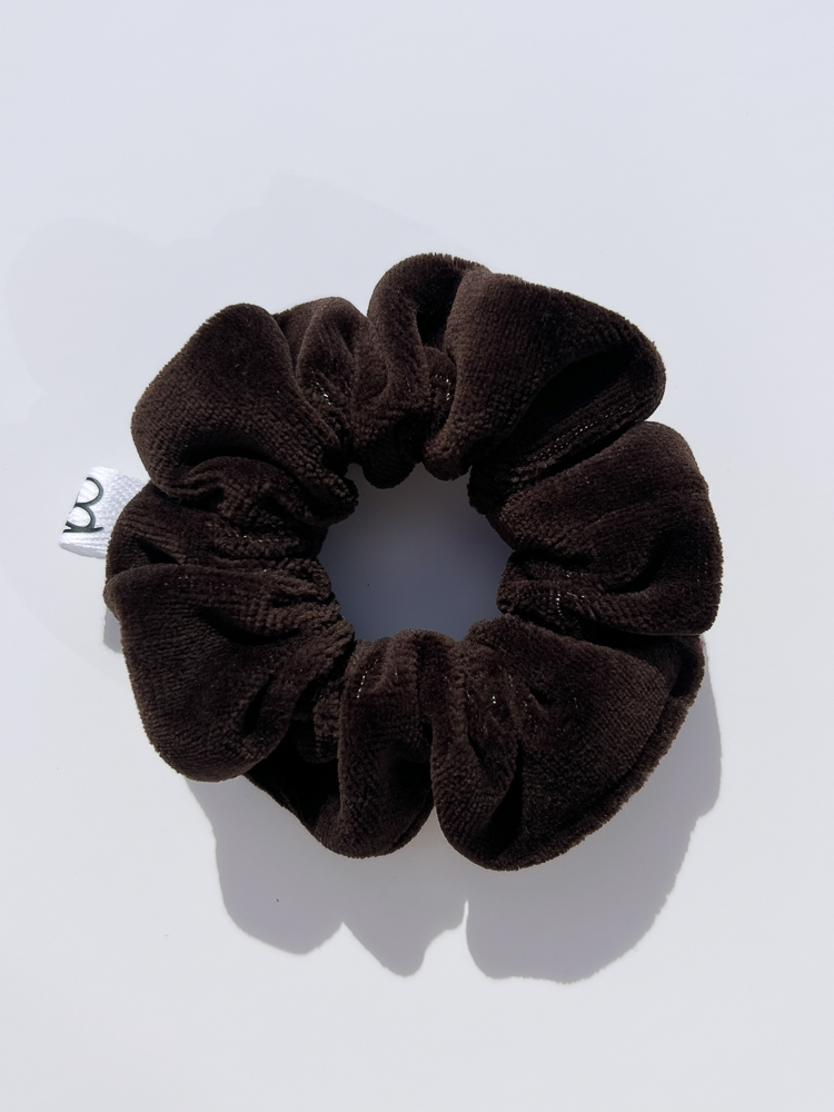 Czekoladowa gumka do włosów scrunchie z weluru bawełnianego dodaje elegancji codziennym fryzurom. Jej aksamitny materiał otula włosy, jednocześnie dobrze je podtrzymując. Głęboki czekoladowy odcień sprawdzi się również w wieczorowych stylizacjach.
