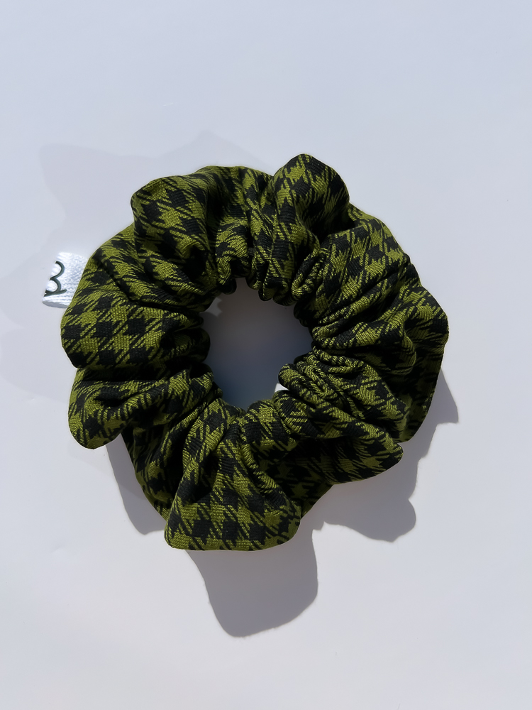 Bawełniana gumka do włosów w czarno-zieloną pepitkę to stylowy dodatek do upięcia włosów. Pepitka to modny i ponadczasowy wzór, który dodaje szyku całej stylizacji. Gładki bawełniany materiał sprawia, że gumka nie niszczy i nie elektryzuje włosów, a dzięki solidnej gumie świetnie trzyma upięcie przez cały dzień. Szyta ręcznie z dbałością o każdy detal.