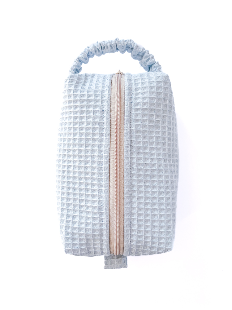 Waflowa struktura materiału sprawia, że kosmetyczka wyróżnia się swoim wyglądem. Mimo niewielkich rozmiarów kosmetyczka jest pojemna – pomieści niezbędne kosmetyki i drobiazgi, które chcesz mieć zawsze przy sobie.