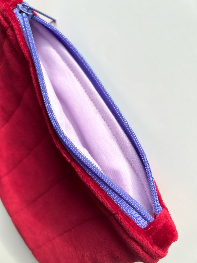 Aksamitna bordowa kosmetyczka saszetka to praktyczne połączenie stylu i funkcjonalności. Miękka, pikowana i lekka – pomieści drobiazgi, których potrzebujesz na co dzień lub w podróży. Uszyta z weluru bawełnianego, z liliową bawełnianą podszewką oraz zamkiem w kolorze fioletowym. Przyjemna w dotyku i urocza sprawdzi się również jako kosmetyczka na prezent.